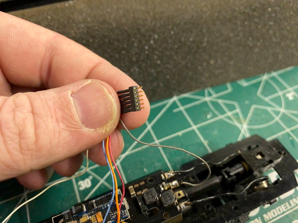 As part of my original installation, I installed a micro connector between the decoder and the lights. That way I could remove the shell if needed without disrupting the wires. I was able to reuse my existing connection to the new decoder, greatly speeding up installation time.