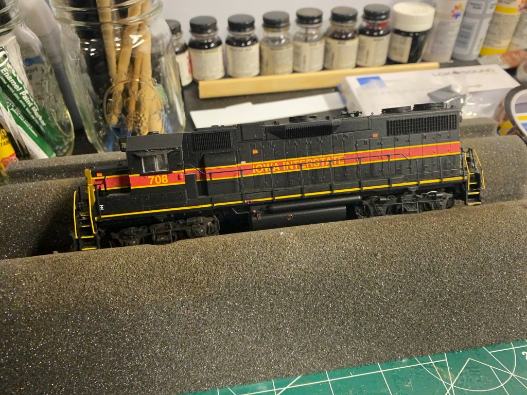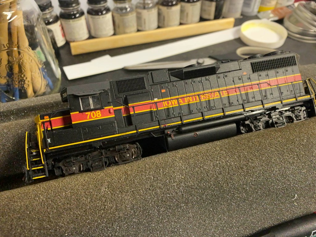 I chose my model of IAIS 708 as a starting point, since it’s my version of Frankenstein’s Monster. The 708 is a combination of a factory-painted Athearn shell (with additional detail parts added) atop an Atlas drive, making it a somewhat unique if ungainly combination. I must have done something right, since it was my workhorse motive power for many years before being surpassed when Athearn came out with IAIS locomotives in their Genesis line.