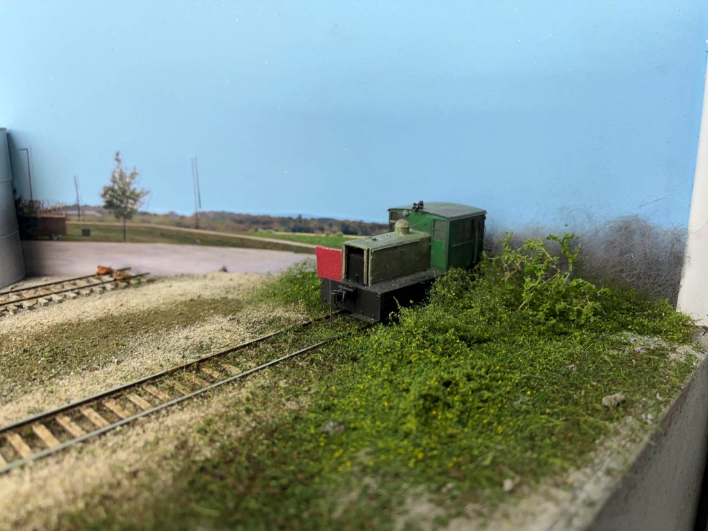 Scenic Express Farm Pasture Blend was then applied in spots along the track. I tried a different method of applying the static grass using a galvanized wire attached to the ground pin to act as a probe, based on a technique I had seen used on War World Scenics‘ YouTube channel. The result was on par with what I usually get, so I’ll probably stick with what I’ve done in the past in the future.