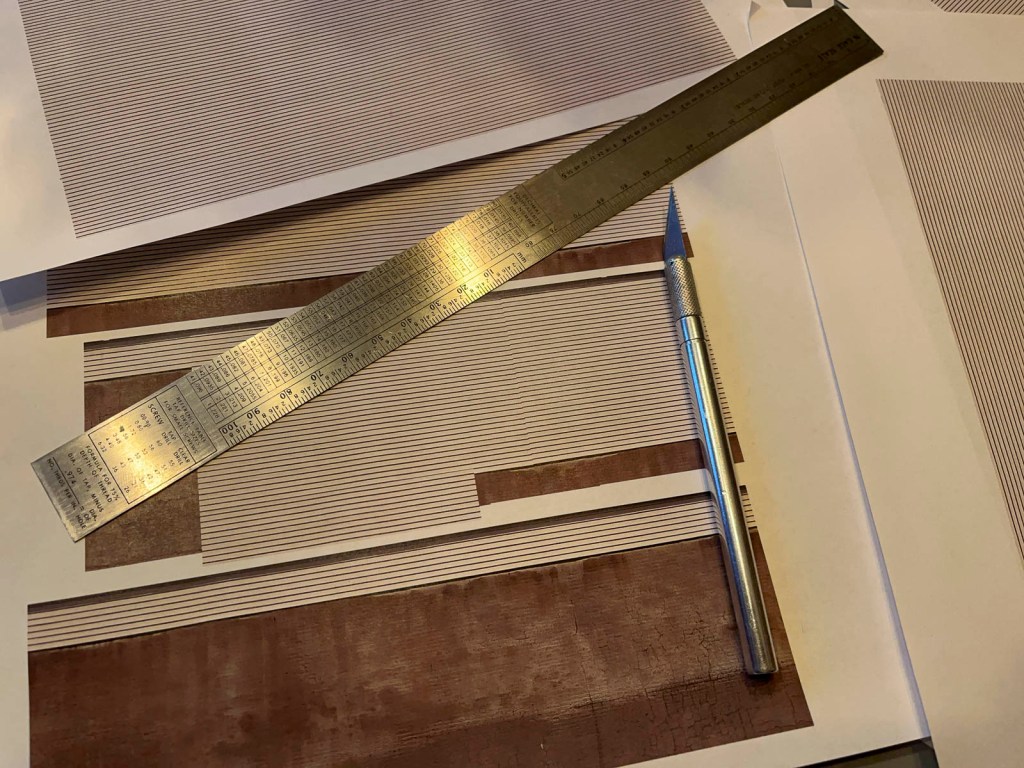The walls were trimmed to fit with a sharp X-Acto knife and a straight edge, then attached to the core using 3M Super 77 Spray Adhesive. I worked carefully to line up the siding across the entire building.