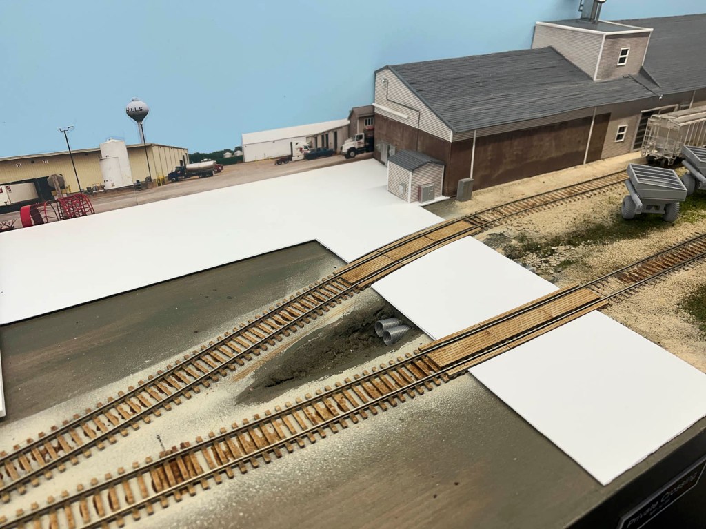 The road itself, along with the visible portion of the Stutsman lot, were fabricated from .040 styrene. I’m still on my original 4×8 sheet I purchased from a local plastics dealer years ago.