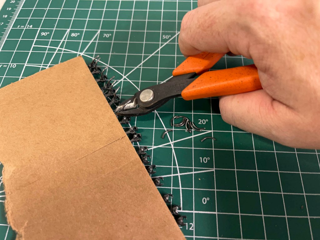 Since I manually uncouple my cars with skewers, I have no need for Kadee’s magnetic airhoses. I place a group of the couplers into a piece of corrugated cardboard and snip the hoses off using a pair of diagonal cutters. Eye protection is always a good idea when working with small objects that often fly across the room.