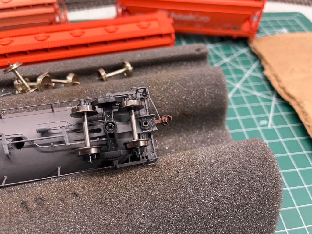 Thank you, random person on the internet, for your generous offer. I’m fully aware that my car fleet is woefully behind others when it comes to detailing and weathering. But before that, I need to make sure they’re mechanically reliable. On The Hills Line, that means using consistent couplers and wheelsets.