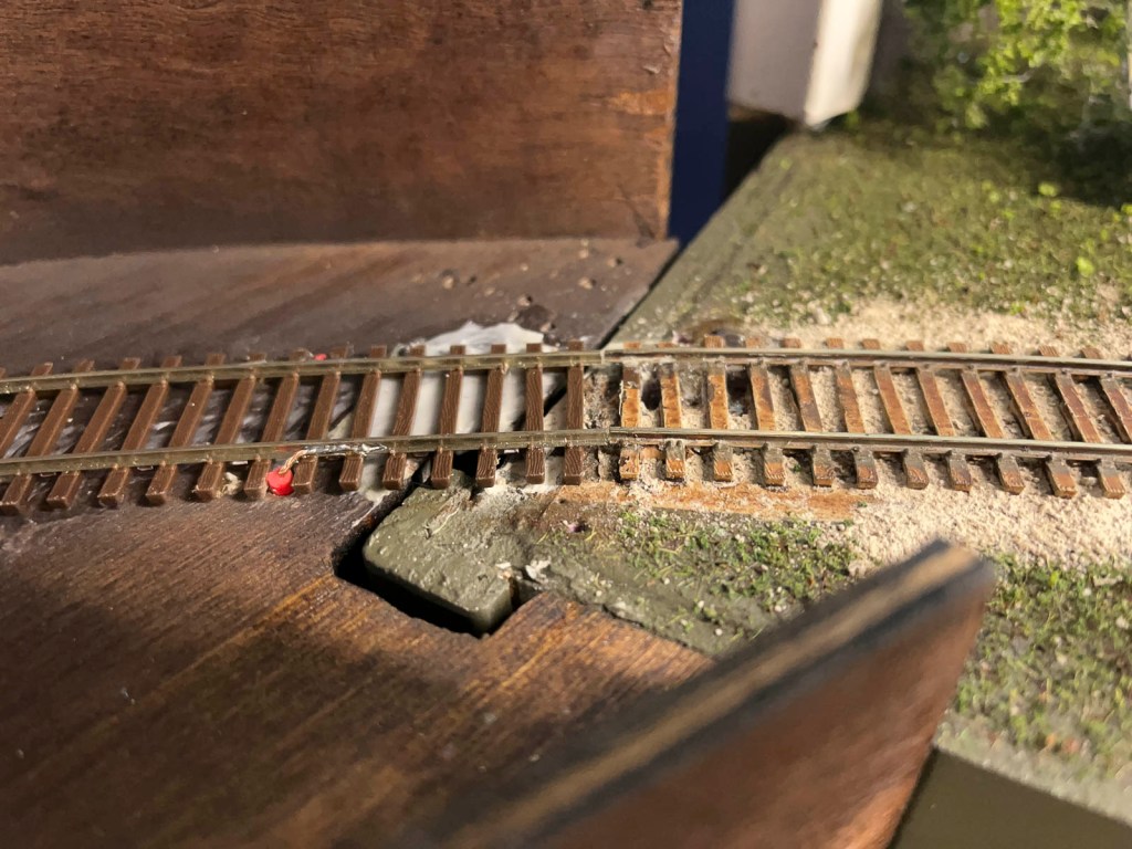 Originally, the rails were secured to both sides of the gap with PC board Gapmaster Ties from American Tie and Timber. To be clear, Gapmasters are a wonderful product, and they kept the track perfectly aligned without issue. But I then went and screwed it up by filing the rail profile down well beyond what was reliable, or even visually appealing.