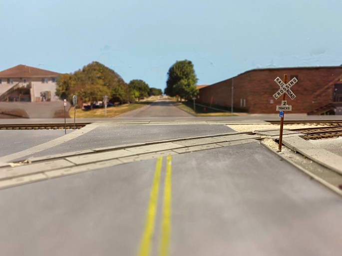 Reconstruction of the Lafayette Street backdrop required a bit more work than just paint and glue. However, the overall effect is far stronger and cleaner than my first effort, and offers a vista unique to The Hills Line. I've come to understand the pros and cons of using rolled aluminum flashing for my backdrop. On … Continue reading Going For Distance